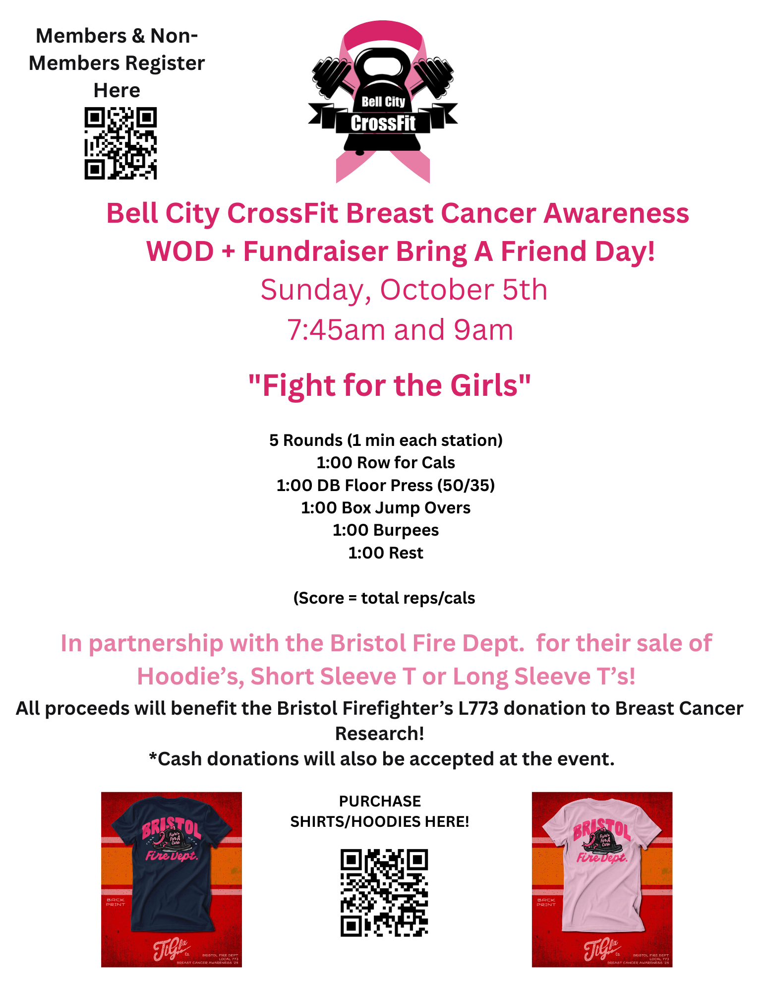 • Sunday, Oct 5: Breast Cancer Awareness Workout for Bring A Friend Day! Register HERE